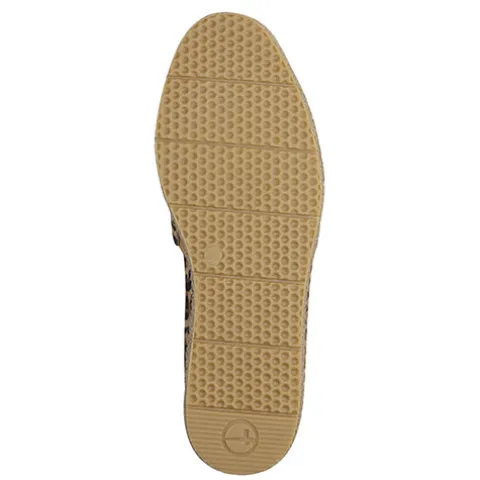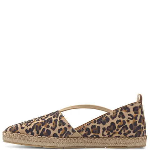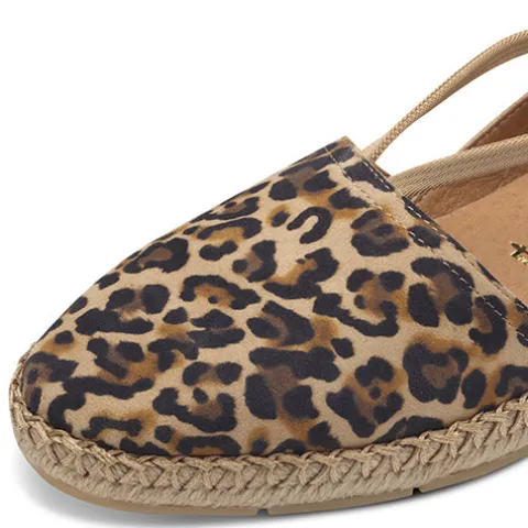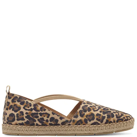 Sød espadrillesko med en overdel af nubuck med leopardprint. En trækfane på hælen gør det nemt at få skoen på, og to elastikker sørger for at holde foden på plads, imens en elastikkile på indersiden giver individuel tilpasning i løbet af dagen. Touch-It-indersålen er blød og komfortabel og beklædt med skind, og ydersålen er stødabsorberende med et godt fodfæste.
