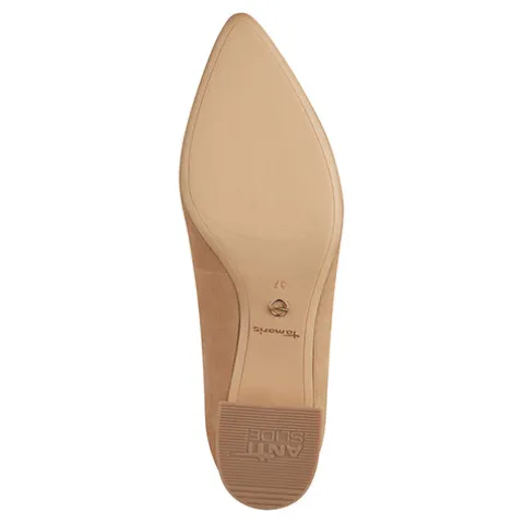 Tamaris pumps med gulddetalje på hælen og tilspidset snude. Touch It i indersålen for et komfortabelt fit.