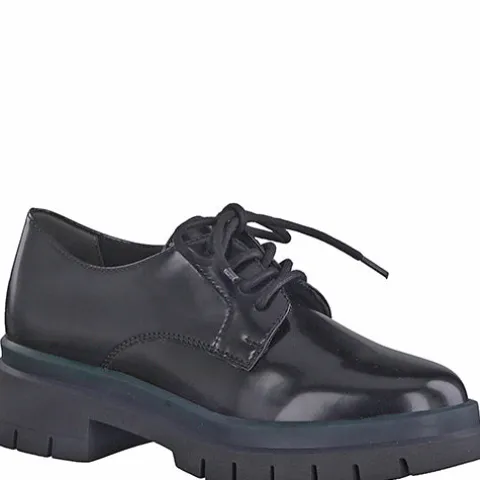 Smart snøresko fra Tamaris med flot grønlig detalje rundt om sålen.
