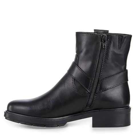Dejlig støvle med en overdel af glat skind, dekoreret med O-ring og rem om anklen samt en trækfane på ydersiden. Støvlen lukkes med en lynlås på indersiden af anklen og har en lille elastikkile ved siden af. Touch it-indersålen er blød, og den stødabsorberende ydersål giver et fint vejgreb.