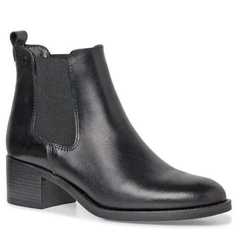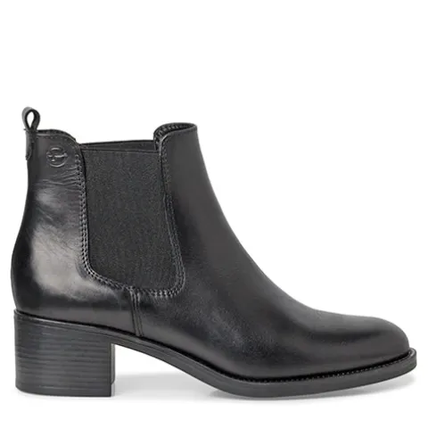 Tamaris støvle med rund snude, behagelig blokhæl og elastik i siderne.