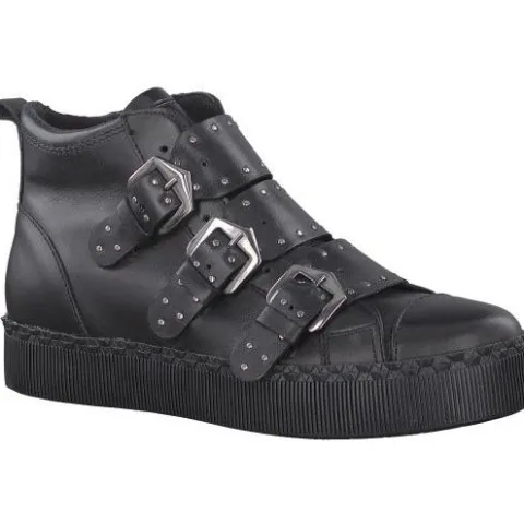 Tamarissko sneaker med fede spændedetaljer på overdelen. Støvlen har en fleksibel plateau-sål. »Touch It«-indersål i skind.