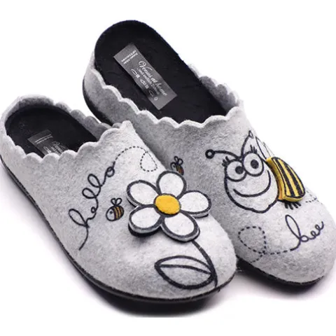 Lun og komfortabel Venus at home slippers-hjemmesko med en overdel af filt, som er dekoreret med en glad bi. Den udtagelige dæksål er blød og foeret, og ydersålen er fleksibel.