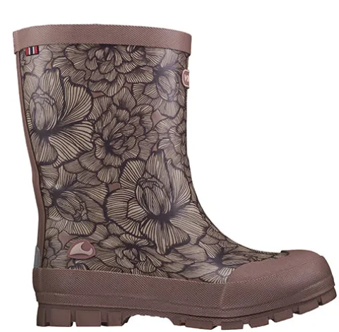 Gummistøvle fra Viking med blomstermotiv og forstærkninger foran. Fremstillet af holdbar naturgummi og har et hurtigttørrende syntetisk foer. En udtagelig indlægssål sørger for polstring og isolering, og sålen med det dybe mønster giver et godt greb på jorden – uden at lave mærker på gulvet. Refleksdetaljer sørger for, at børnene er synlige.
