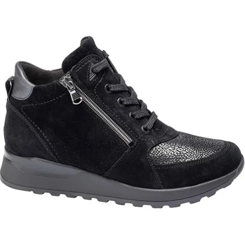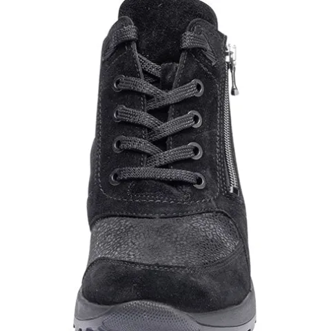 Letvægts støvle fra Waldläufer i et flot design med snøre og lynlås. Foran på støvlen er der isat stretch-materiale, så der er god plads til tæerne.