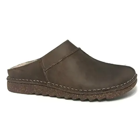 Dejlig hjemmesko med en overdel af olieret nubuck med kraftige syninger. Indvendig har hjemmeskoen et varmt foer, og dæksålen er beklædt med ruskind. Den fleksible ydersål med tydelige riller er stødabsorberende med et godt fodfæste.