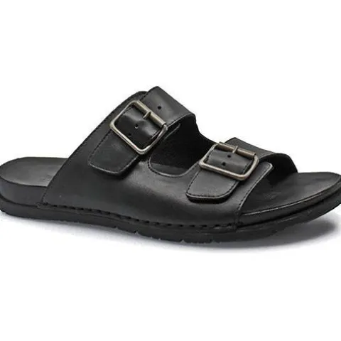 Tøffelsandal fra Walk In The City med bløde og fleksible såler. Enkel og funktionel. Sandalen har en dæksål i skind, så tæerne holder sig friske i længere tid. Reguleres med spønder over foden.