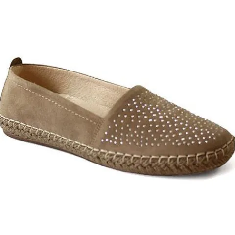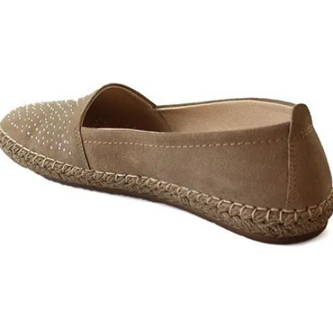 Smart espadrillos type fra Walk In The City med pyntesten på forfoden. Indvendig er der skindfor og udtagelige dæksåler i skind.