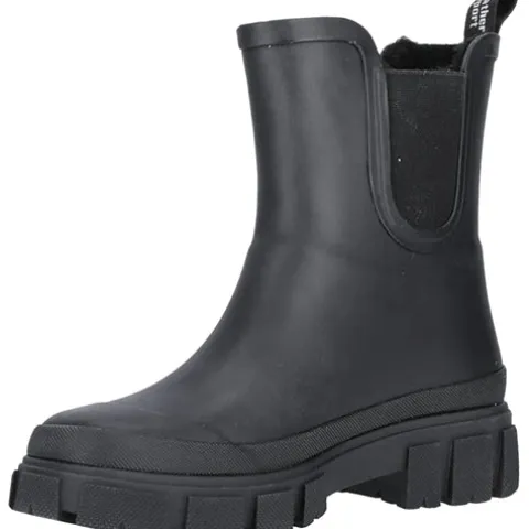 Lækker kortskaftet Comart W Rubber Boot Warm termostøvle med elastikpaneler på siderne. En trækfane bagpå gør det nemt at træde i støvlen. Indvendig har støvlen et varmt foer. Indersålen kan tages ud, og den kraftige ydersål med lidt hælhøjde gør støvlen smart, samtidig med at den er stødabsorberende med et godt fodfæste.