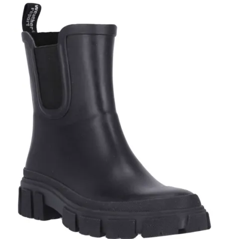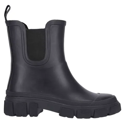 Gummistøvle med kraftig sål. Elastik i siderne. Modellen er stor i størrelsen.