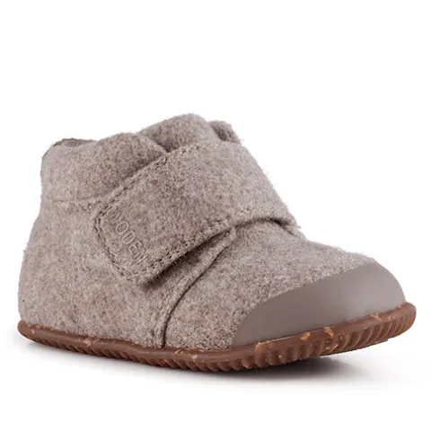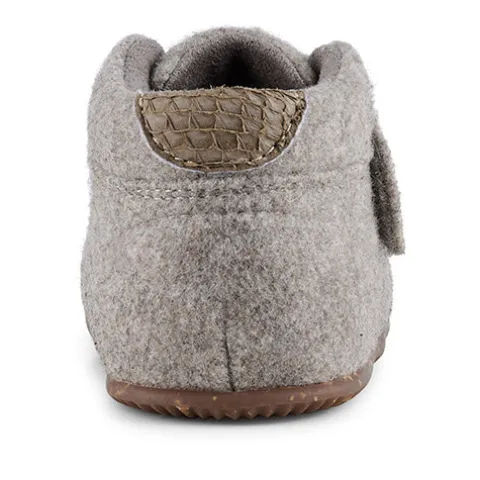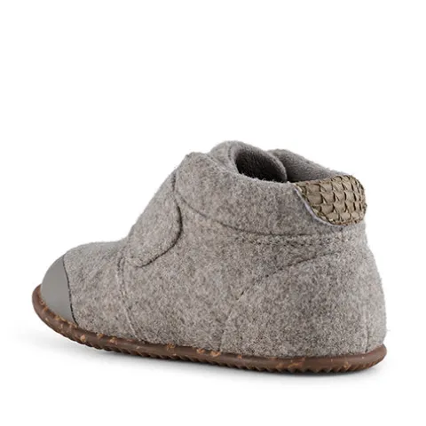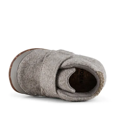 Babysko i fin beige melange med velcrolukning, der gør skoene lette at få af og på. De har en blød hælkappe og kombinationen af læder og filt sikrer et sundt og åndbart miljø for små fødder. Indersålen er blød og bestående af det karakteristiske WODEN-kork og stødabsorberende EVA-skum.