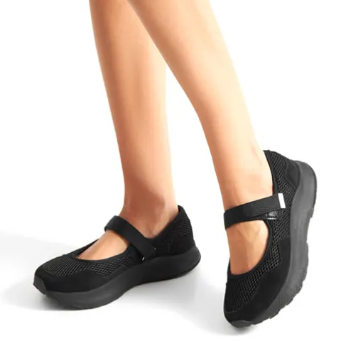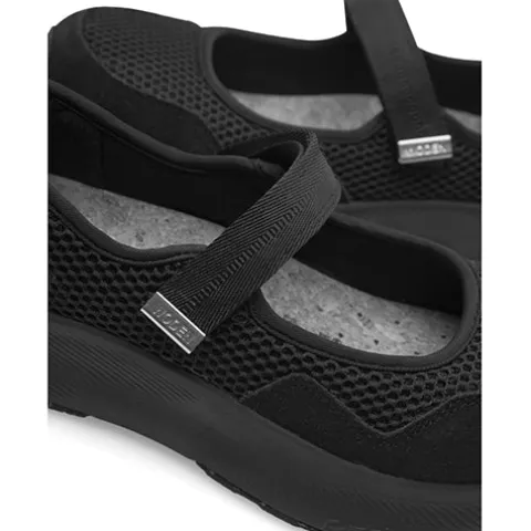 Dejlig Mary Mesh sko i en nytænkt Mary Jane-stil med komforten fra en sneakersål, bygget på WODEN’s E-Motion-teknologi. Overdelen er fremstillet af genbrugstekstil og LWG-certificeret ruskind med en detalje af upcyclet fiskelæder med ASC-certificering på hælen. Skoen lukkes med en velcrorem over vristen. Indvendig er skoen foret med tekstil, og den udtagelige indersål af blød, formstøbt PU beklædt med kork er støddæmpende og komfortabel. Woden Air Flow System™ øger åndbarheden, imens WODEN Natural Soft Technology™ sørger for støddæmpning, fleksibilitet og komfort. Mellemsålen i letvægtsmaterialet EVA giver en god og varig støtte, og den slidstærke ydersål med gummi med 10 % genbrugsgummi er stødabsorberende med et godt fodfæste.