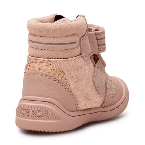 Tristan Boot ll er den optimale begynderbabystøvle. Den er bl.a. fremstillet af ruskind med detaljer af fiskeskind og er foret med genanvendte materialer. Støvlen har refleksdetaljer og lukkes med to velcroremme over vristen, som gør den let at få af og på, og åbningen er polstret for øget komfort. I indersålen, kan tages ud, finder du et blødt underlag i skummaterialet EVA, som er både let og stødabsorberende. Indersålen er beklædt med det karakteristiske WODEN kork, som sikrer åndbarhed. Wodens børnestyles er altid udstyret med et voksetillæg på indersålen, så du kan være sikker på dit barns korrekte størrelse. Ydersålen af gummi er fleksibel og giver et godt fodfæste.