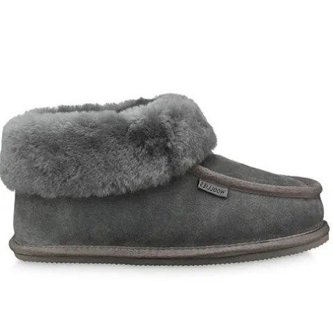 Woollies ruskindshjemmesko med lammeskindsfoer og EVA-ydersål. Både den bløde pelskrave og det indvendige bløde, varme foer er i lammeskind/lammeuld, som sikrer dig lune fødder.