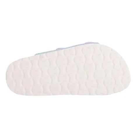 Dejlig Messina Kids Cork slippers-sandal med en overdel af superblød syntet med glimmer. Sandalen kan justeres med hjerteformede spænder på de to remme over vristen, og fodskålen er med til at holde foden på plads. Den ruskindsbeklædte, ergonomiske fodseng er komfortabel og støddæmpende med ekstra polstring på hælen, imens mellemsålen af EVA-skum og kork forbedrer stødabsorberingen og øger komforten. Den slidstærke ydersål giver et fint fodfæste.