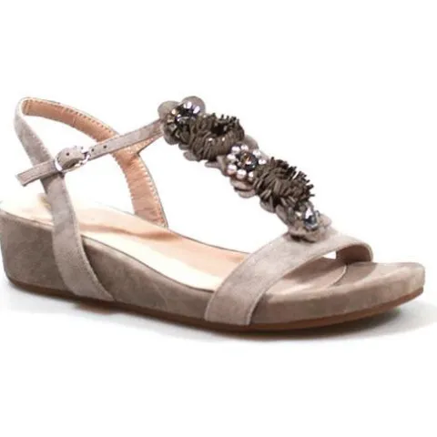 Alma en Pena sandal med flot pynt på t-remmen. Sandalen lukkes med et spænde på ankelremmen. Indvendig er der skindfoer og dæksål i skind med ekstra polstring.