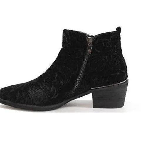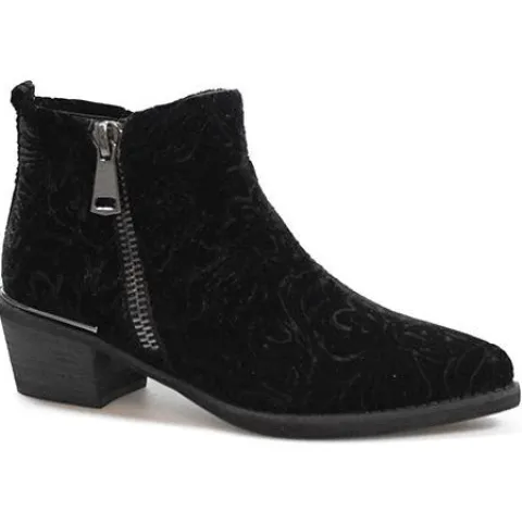 Flot støvle fra Alma En Pena i velour med mønster på overdelen. Lynlås på indersiden og pyntelynlås på ydersiden. Indvendig er der en dejlig blød dæksål i skind og tekstilfoer.