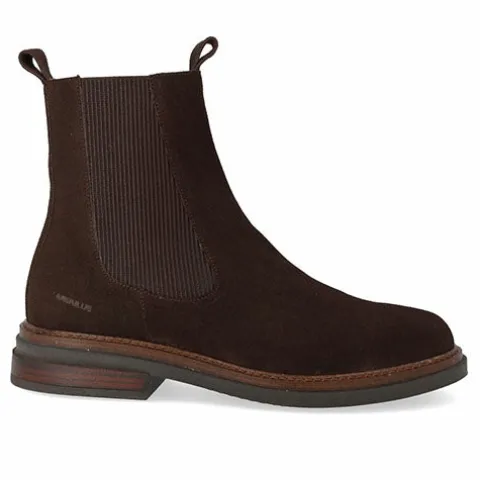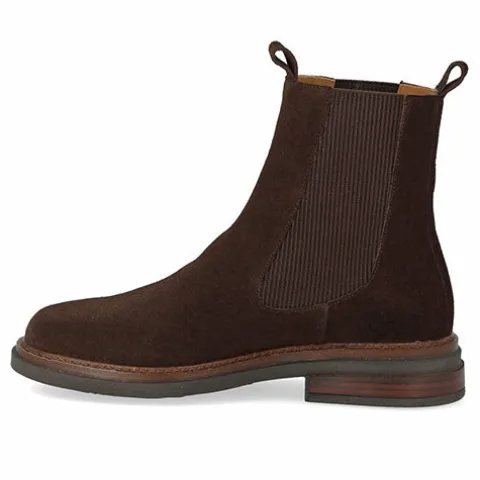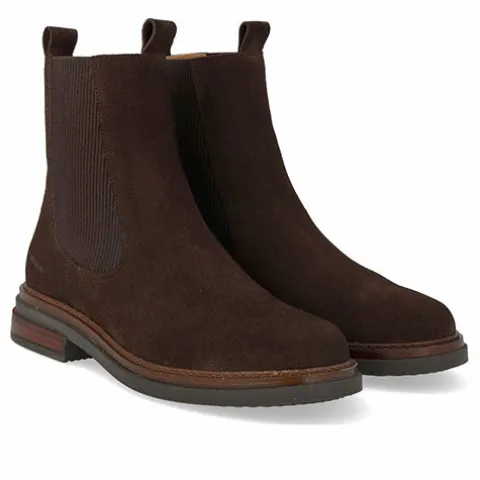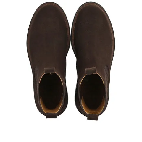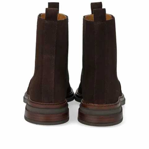 Lækker chelseastøvle med en overdel af ruskind med rund snude og elastikpaneler på siderne af anklen samt to trækfaner. Støvlen har et tætsiddende ankelhøjt skaft, og indvendig har den et kromfrit skindfoer, så fodklimaet er optimalt. Indersålen er komfortabel, og gummisålen med dekorativ stikningsrand er stødabsorberende med et fint fodfæste. Designet i Danmark og håndlavet med kærlighed i Portugal.