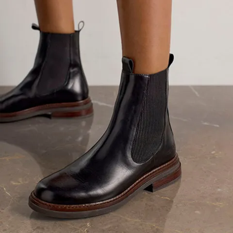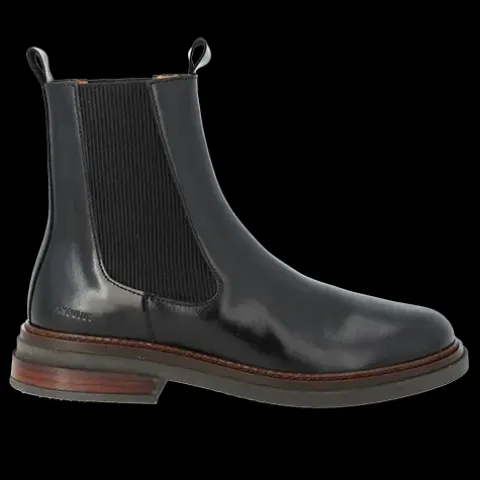 Lækker chelseastøvle med en overdel af glat skind med rund snude og elastikpaneler på siderne af anklen samt to trækfaner. Støvlen har et tætsiddende ankelhøjt skaft, og indvendig har den et kromfrit skindfoer, så fodklimaet er optimalt. Indersålen er komfortabel, og gummisålen med dekorativ stikningsrand er stødabsorberende med et fint fodfæste. Designet i Danmark og håndlavet med kærlighed i Portugal.