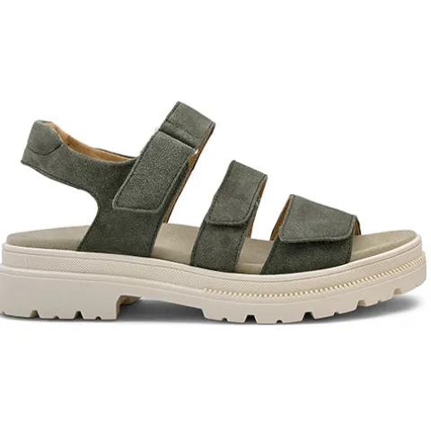 Dejlig Dover-S sandal fra Ara med en grov og fleksibel gummisål. Overdelen er af blødt ruskind. Den udtagelige indersål, som er dejligt blød og kan maskinvaskes ved 30 grader, har Aras HighSoft teknologi. Sandalen reguleres og lukkes med tre remme over forfod og vrist, og den ikke-justerbare hælrem er polstret for ekstra komfort.