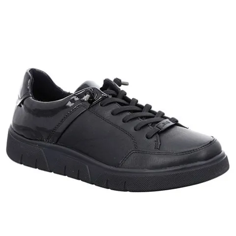 Super fin Ara sneaker i dejlig blødt skind med lakdetaljer. Skoen har elastiksnørebånd, så de er nemme at tage på. Det indvendige frottéfoer er hurtigtørrende, fugtabsorberende, og dejlig blød. Desuden understøtter kombinationen af blødt materiale, en yderst fleksibel ydersål og en polstret indersål (“High Soft”) dit velbefindende ved hvert trin. Dæksålen er aftagelig og kan erstattes med ens egen ved behov.