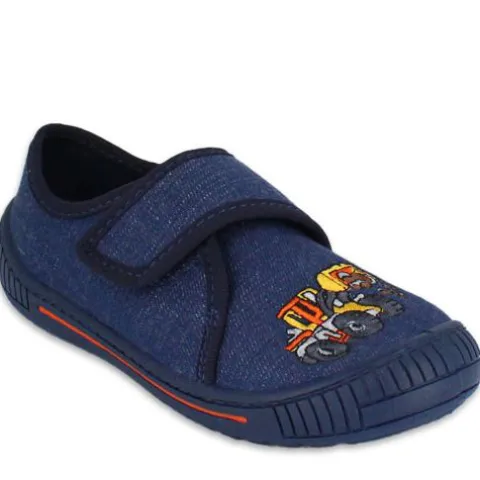 Fin hjemmesko med velcro og broderet traktor motiv foran.