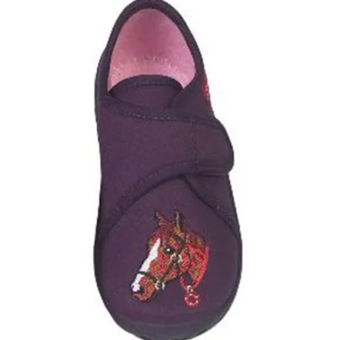 Blød børnehjemmesko med hestemotiv fra Beck med åndbare såler. Velcorem over vristen.