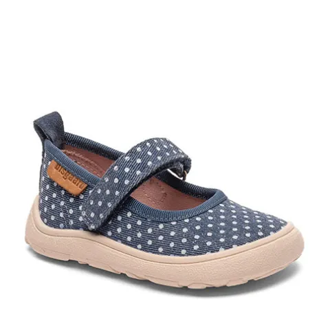Supersød Barefoot Ballet sko med ekstra bredde om forfoden, som giver god plads til tæerne og fremmer en sund fodstilling. Overdelen er af tekstil med glimmer og prikker, foret med et blødt bomuldsfoer, der giver et behageligt miljø og holder små fødder komfortable og varme hele dagen. Skoen lukkes med en velcrorem over vristen, imens en trækfane på hælen gør det nemt at få skoen på. Skoens flade sål uden hældrop fremmer en naturlig gang og giver en forbedret ankelstabilitet samt balance, og den faste hælkappe positionerer fødderne korrekt i skoen og giver stabilitet omkring anklen. Den udtagelige indersål af genanvendt PU-skum med mikrofiber sikrer optimal stødabsorbering og åndbarhed, imens den fleksible og lette gummiydersål følger fodens bevægelser og giver maksimal frihed og komfort.