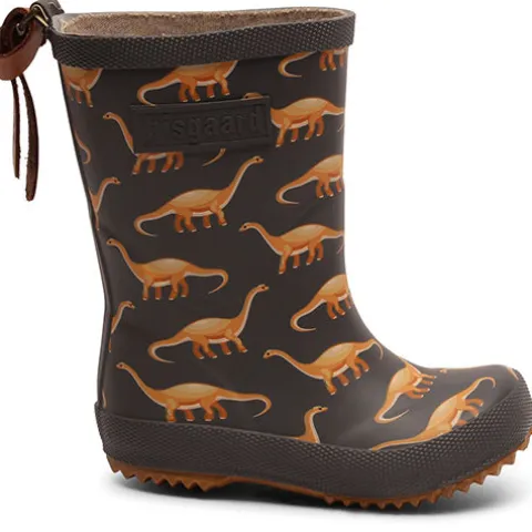 Gør regnvejrsdagene lidt sjovere med gummistøvlen ’Camel Dinos’. Gummistøvlen er håndlavet med vandtæt, elastisk og slidstærk naturgummi, der holder fødderne tørre på våde regnvejrsdage. Støvlen er foret med blød og åndbar bomuld. Den fleksible gummisål sikrer, at barnet står godt fast på underlaget. På ydersiden af skaftet sidder bisgaard-logoet, og øverst bagpå er fastgjort en metalring, hvortil er bundet et langt stykke skind, der fungerer som en effektiv trækfane for små fingre.