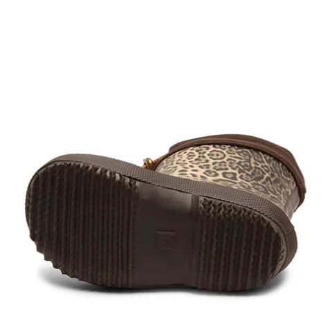 Superdejlig og 100 % vandtæt Leopard termogummistøvle med en overdel af naturligt gummi, som giver ultimativ beskyttelse og fleksibilitet til alle slags vejr, og udstyret med en slidstærk ripstop-overdel, der giver ekstra styrke og modstand mod slitage, så støvlerne kan klare langvarige eventyr. Øverst på skaftet er støvlen udstyret en justerbar manchet med speed lace-snøre, som giver ekstra beskyttelse mod vandindtrængning. Indvendig har støvlen et blødt og naturligt temperaturregulerende uldfoer af 100 % lammeuld, der sikrer komfort og varme fødder i skiftende vejr, uden at de bliver overophedede. Indersålen kan tages ud, hvilket sikrer nem tørring, og den fleksible ydersål er stødabsorberende med et godt vejgreb og sikrer komfort hele dagen. Perfekt til børn, der elsker udendørs eventyr uanset vejret.