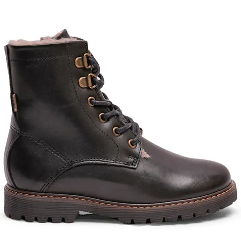 Vandtætte vinterstøvler med uldfoer og TEX, som holder fødderne varme og tørre i årets koldeste måneder. Støvlen er lavet af naturligt og åndbart læder med temperaturregulerende uldfoer, der føles silkeblødt for fødderne. Der er tilføjet en skjult lynlås i siden, så barnet nemt kan tage støvlen på selv. Den fleksible ydersål sørger for høj komfort gennem hele dagen og giver et godt fodfæste.
