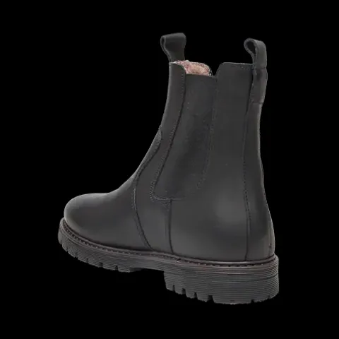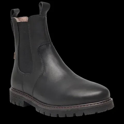 Lækker Neel chelseastøvle med en overdel af glat skind og to elastikpaneler på siderne. Med trækfaner både for og bag er det nemt at træde i støvlen, som har et varmt uldfoer. Sammen med en vandtæt tex-membran holdes fødderne varme og tørre på kolde vinterdage. Indersålen er beklædt med uldfoer, og den kraftige gummiydersål er stødabsorberende med et godt vejgreb.