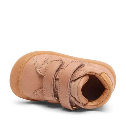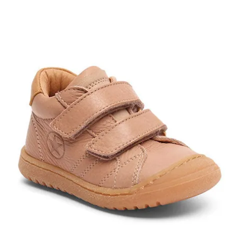Thor v skoen fra bisgaard er en smart og klassisk begyndersko i skind til små eventyrlystne fødder. Skoen er specielt designet i lette og fleksible materialer, der følger den lille fods naturlige bevægelser. Skoen har en forstærket gummisnude, som mindsker slid og er særlig praktisk til de mindste børn. Den er håndlavet i blødt, åndbart og naturligt læder med kromfrit læderfoer indvendigt. Den faste og polstrede hælkappe sikrer den rette støtte og stabilitet omkring anklen, og de to justerbare velcroremme over vristen sikrer en naturlig pasform og en let lukning for selv de mindste børn.