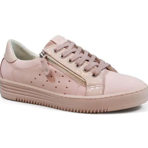 Bullboxer sneaker med snøre og udvendig lynlås. Modellen har fine lakdetaljer ved snøreringe og på bagkap. Ydersålen er tonet i rosa farve. Super blød og lækker dæksål.