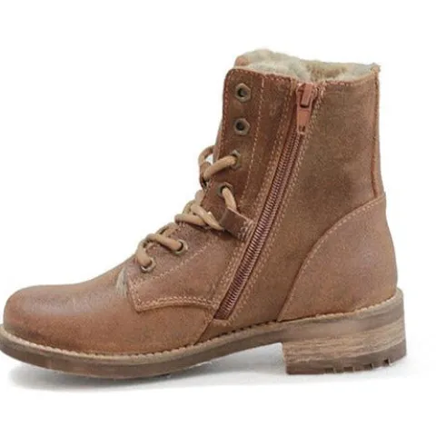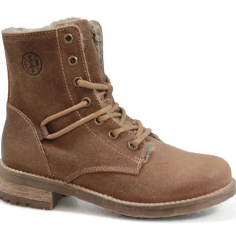 Varm støvle fra Bullboxer med både snørebånd og lynlås. Pelsfoer holder fødderne varme.