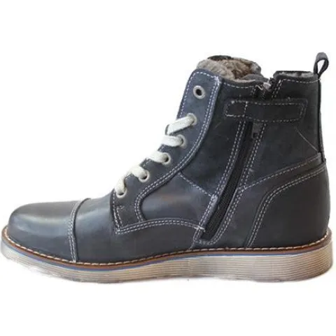 Sej snørestøvle fra Bullboxer med spænde og lynlås udvendigt på støvlen. Støvlen er med lunt for og indvendig lynlås. Bløde og fleksible såler.