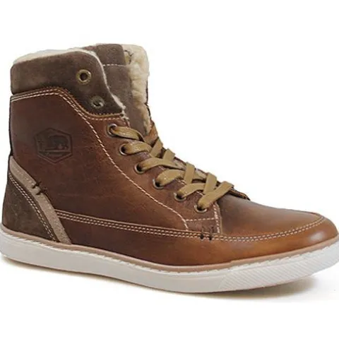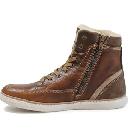 Snørestøvle fra Bullboxer i brunt skind. Indvendig på skaftet et der lynlås. Støvlen er foret med et varmt tekstilfoer. Dæksål i skind.
