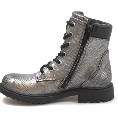 Snørestøvle fra Bullboxer med super flot præg i hele støvlen. Indvendig på skaftet et der lynlås. Støvlen er foret med et lunt fleecefoer og har dæksål i skind.