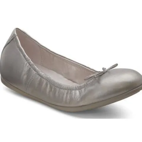 Sød og feminin ballerina med overdel i blødt og åndbart skind. Modellen har elastik i kanten, så de sidder godt på foden. Indvendig er der skindfor. Tynd ydersål i PU, der er slidstærk, fleksibel, og behagelig for fødderne hele dagen.