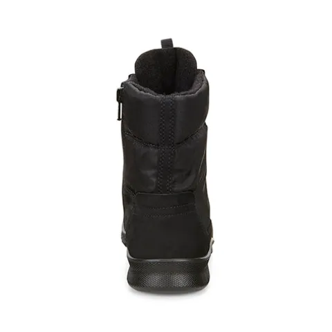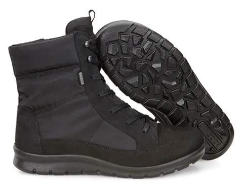 Varmforet støvle fra ECCO i et mix af skind og tekstil. Støvlen er med snørebånd og indvendig lynlås. Støvlen er vandtæt og åndbar med Goretex®membran.