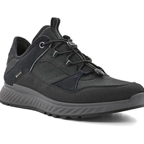 GORETEX® sko fra ECCO med praktiske elastiksnørebånd. Skoen er opbygget så den giver foden den optimale støtte og komfort. Sålen er en to-komponent sål. Det giver ekstra stødabsorbering og slidskyrke