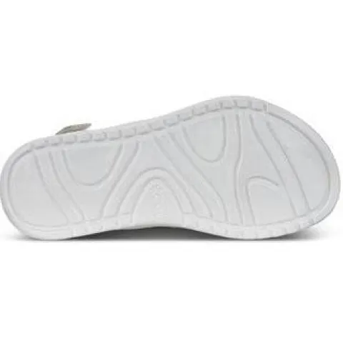 Super sød børnesandal fra ECCO med det fineste deko på forfoden. Dekoremmen kan iøvrigt tages af, hvis man ønsker en mere enkel sandal. Overdel i blødt skind, der er designet til naturligt at tilpasse sig til foden. To velcroremme over foden og en bagom hælen, gør sandalen let at tage af og på. Ydersålen i ét stykke i PU er let og robust nok til udendørs leg. Skindforet giver ekstra polstring og støtte.