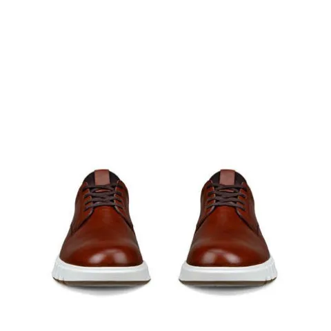 Smart Gruuv Studio M sko med en overdel af ECCO glat skind. Skoen lukkes med snørebånd, og hæl og pløs er af polstret tekstil for øget komfort. Skoen har mulighed for ekstra rummelighed med Dual Fit-indersåle, som er to udtagelige indlægssåler af komfortskum. Den øverste indersål er beklædt med skind. Du kan fjerne den nederste eller begge indersåle og på den måde tilpasse bredden individuelt. Skoen har en behagelig og støddæmpende PU-mellemsål skabt med ECCO FLUIDFORM™ Direct Comfort Technology, som giver en blød, fleksibel og fri bevægelse samt en naturlig anatomisk støttende pasform og fornemmelse, imens den bløde og lette PHORENE™-mellemsål giver god returenergi. En unik egenskab ved denne behagelige sko er den dynamiske gummisål, som er fleksibel og bøjelig i to retninger, så din fod kan bevæge sig frit i enhver vinkel uanset underlaget. Herudover er ydersålen stødabsorberende med et godt vejgreb. Med ECCO Gruuv Studio M får du en landtidsholdbar kvalitetssko, som opfylder dine behov på farten i byens gader.