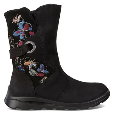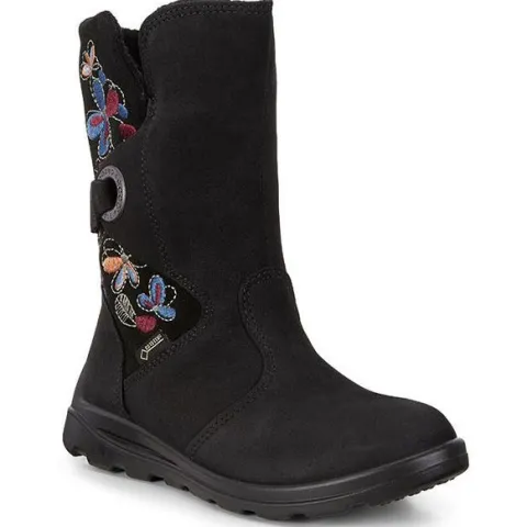 ECCO støvle med det flotteste broderi på skaftet. 100% vandtæt Goretex®-membrran og indvendig lynlås, varm foring og en udtagelig indlægssål i filt. Bløde og fleksible såler.