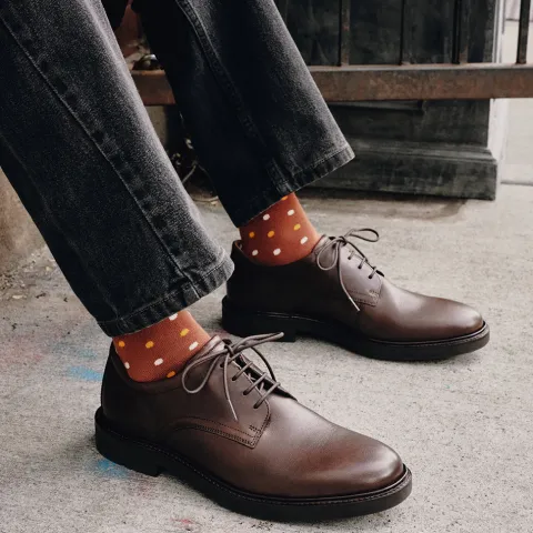Flot METROPOLE LONDON sko til herrer med rund tå og en overdel af glat ECCO-læder i førsteklasses kvalitet. Skoen er en klassisk derbysko, der føles som din bedste sneaker, idet den er rummelig med Dual Fit-systemet, som består af to udtagelige indersåler. Tag den nederste ud for en bredere sko, hvis der er behov for mere vidde og plads i tåzonen. Den øverste indersål består af blød, formstøbt ECCO PHORENE™ med skind, som er superkomfortabel og ultralet med stødabsorbering. Den fleksible og lette ydersål med ECCO FLUIDFORM™ giver en anatomisk pasform og naturlig fornemmelse og er stødabsorberende med et fint fodfæste. Med lidt hæl til at give dig et behageligt løft.