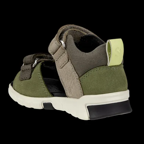 Rigtig fin Mini Stride sandal med en overdel af nubuck og glat skind. Sandalen har en lukket hælkappe med en polstret åbning for øget komfort og beskyttelse. Sandalen lukkes med to velcroremme forfod og vrist, imens en trækfane på hælen gør det nemt at få sandalen på. Den åndbare skinddæksål er polstret og stødabsorberende med fin plads til forfoden, og ydersålen er stødabsorberende med et fint fodfæste.