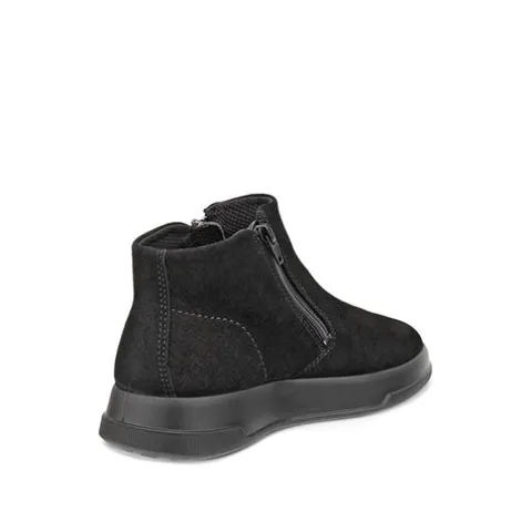 Lækker Move W Zip Bootie med en overdel af førsteklasses ruskind foret med åndbart tekstil. Støvlen lukkes med to lynlåse (en på hver side af anklen), som sikrer nem af- og påtagning. Den anatomiske indersål beklædt med tekstil kan tages ud. Den fleksible ydersål er stødabsorberende med et fint fodfæste, og ECCO FLUIDFORM™ Technology sørger for en naturlig pasform og følelse samt stødabsorbering.
