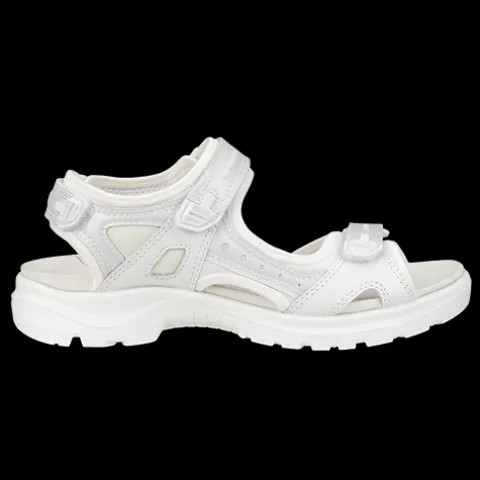 Smart og helt ensfarvet Offroad sandal med en overdel af glat skind og åndbart tekstil. Sandalen reguleres og lukkes med tre velcroremme over forfoden og vristen og om hælen. Indersålen er komfortabel, og den stødabsorberende gummiydersål har ECCO Receptor-teknologi, som giver ekstra støtte på vandreturen.