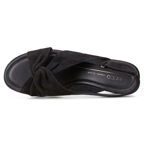 Super flot sandal fra ECCO med krydsrem med knude over tæerne. Sandalen lukkes og reguleres med velcro på ankelrem. Indvendig er der skindfoer og dæksål i skind.