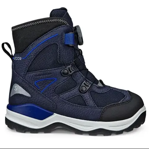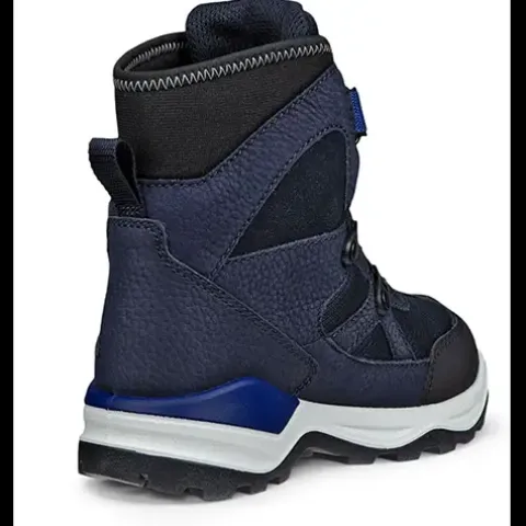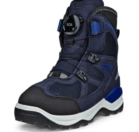 Supersej Snow Mountain vinterstøvle med en overdel af nubuck og tekstil med en slidstærk detalje på snuden og en refleksdetalje på ydersiden af hælen. Støvlen har en BOA-lukning, og en trækfane på hælen gør det nemt at træde i støvlen. Skaftet er ekstra polstret, og tekstil øverst på skaftet sørger for tættere tilslutning om benet. Indvendig har støvlen et varmt, blødt foer samt en PFAS-fri, vandtæt membran, så fødderne holdes varme og tørre i vintervejr. FLUIDFORM™-teknologien skaber en holdbar, fleksibel og let sål, der giver en finjusteret balance mellem støddæmpning og rebound og samtidig sikrer en fremragende komfort. Den fleksible ydersål er stødabsorberende med et godt vejgreb.